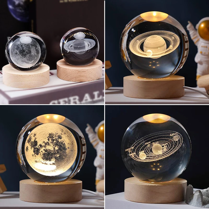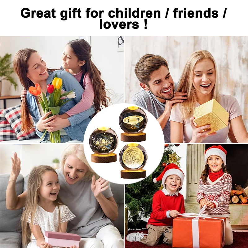 Gravação a Laser 3D Requintada: Nossas esferas de cristal vêm em quatro estilos diferentes, com técnicas avançadas de gravação a laser 3D que criam imagens fascinantes, como o sistema solar. Mesmo após uso prolongado, o cristal mantém seu brilho e beleza. A base de madeira com iluminação LED adiciona um toque quente e sofisticado, ideal para criar um ambiente romântico e acolhedor.